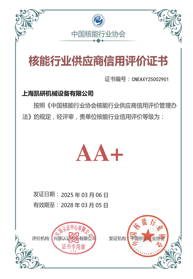 AA+核能行業(yè)供應(yīng)商信用評價證書