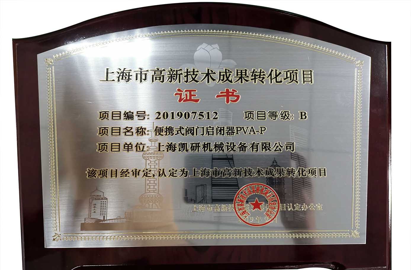 近日,上海凱研機械設(shè)備有限公司自主研制的“便攜式閥門啟閉器”被認定為2019年上海市高新技術(shù)成果轉(zhuǎn)化項目。